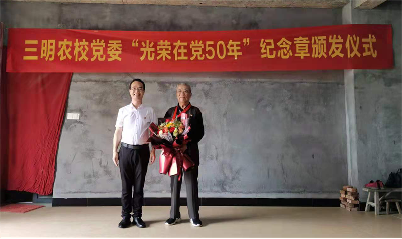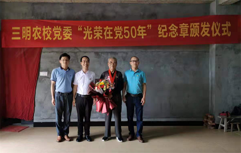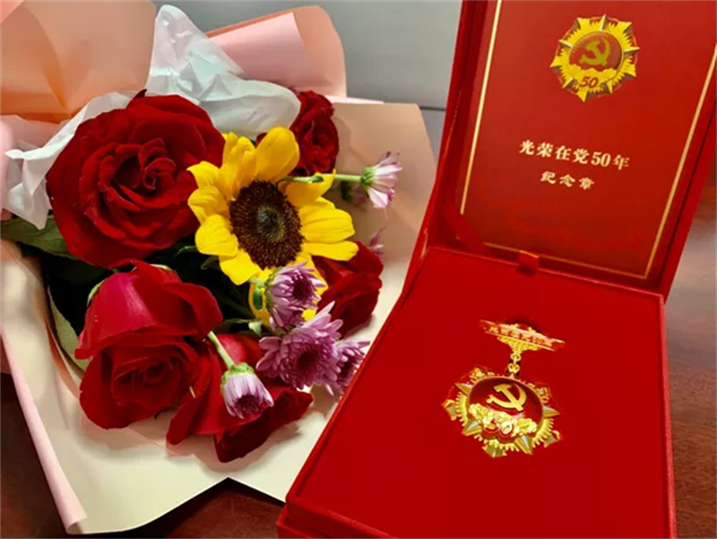 2021年6月2日起,全国多个地方和单位陆续为健在的截至2021年7月1日党龄达到50周年、一贯表现良好的党员举行庄重简朴的“光荣在党50年”纪念章颁发仪式。我校原保卫科科长、退休教师薛金章同志于1965年7月1日加入中国共产党,党龄达56年,是学校唯一的一位“光荣在党50年”的健在老党员。