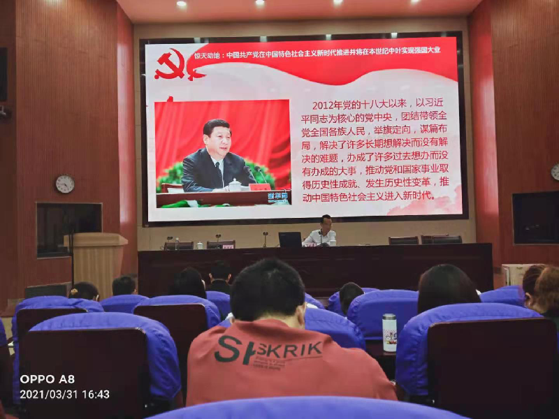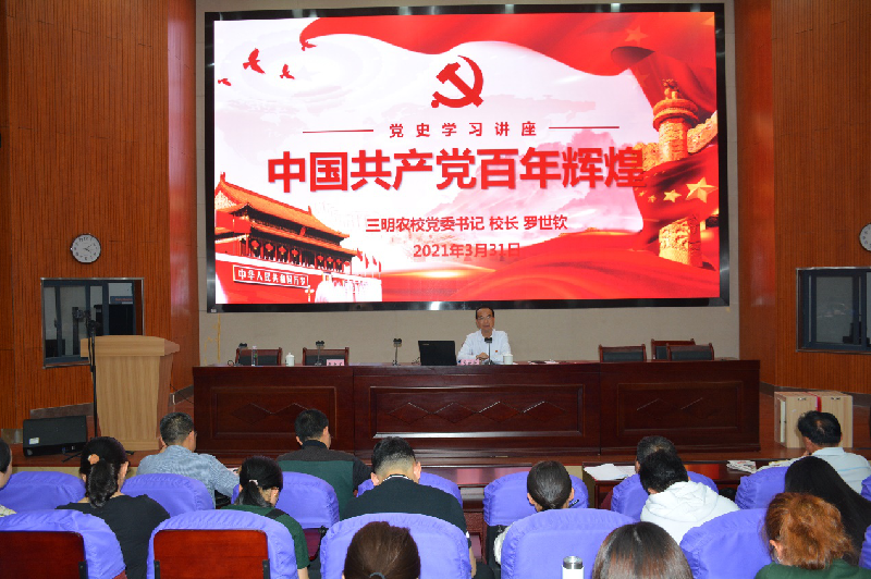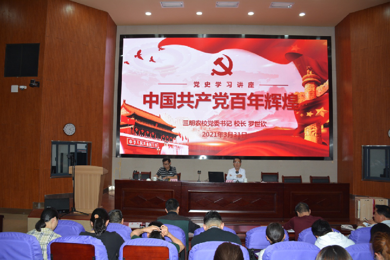 根据上级党史学习教育有关通知精神,结合学校党史学习教育安排,3月31日下午,开云(中国)党史学习教育系列专题讲座第一讲在学校学术报告厅开讲。讲座由党委委员、副校长黄书盛主持,党委书记、校长罗世钦主讲,全体教职员工到场聆听。